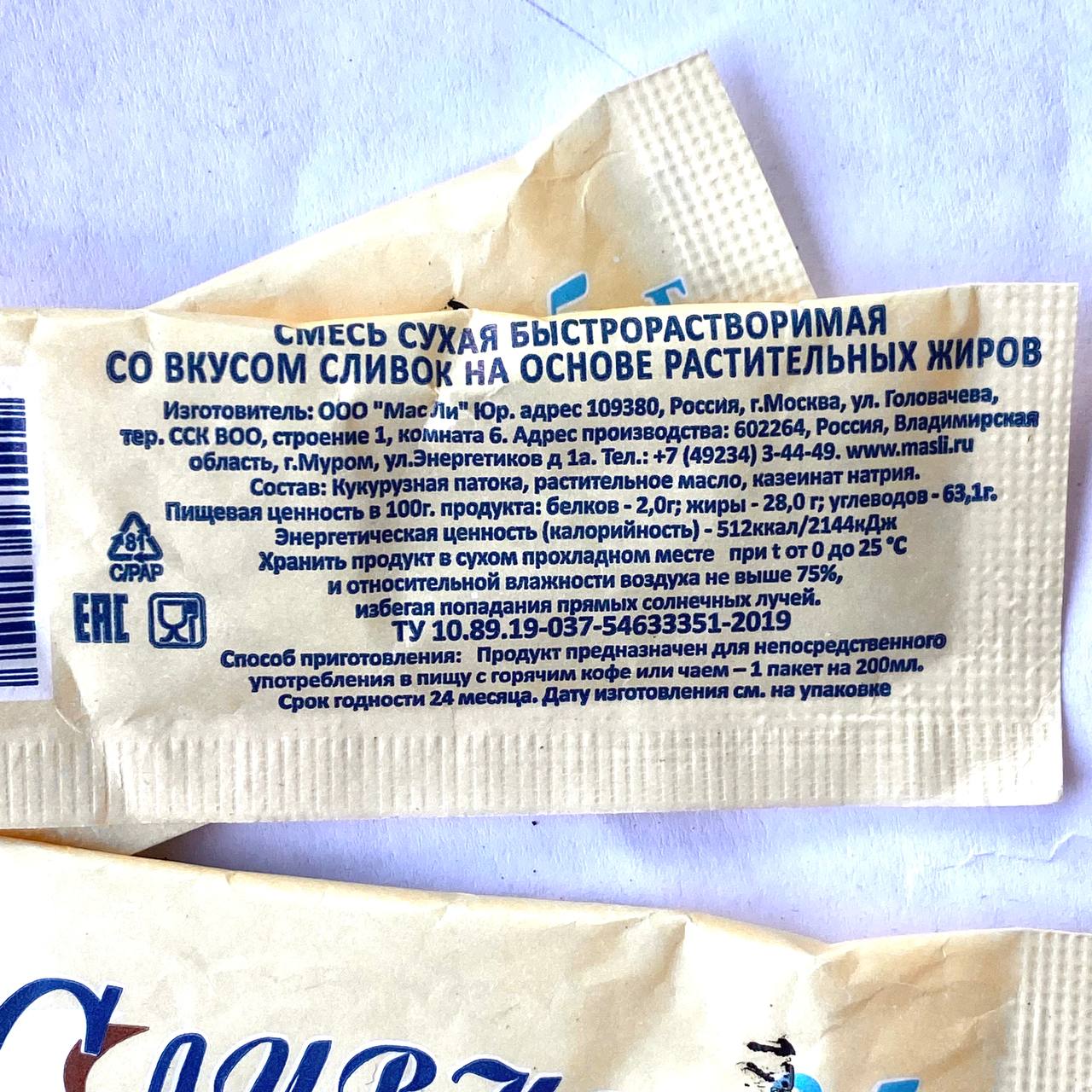 Внимание! Продукт растительный - заменитель сухих сливок растительный.
